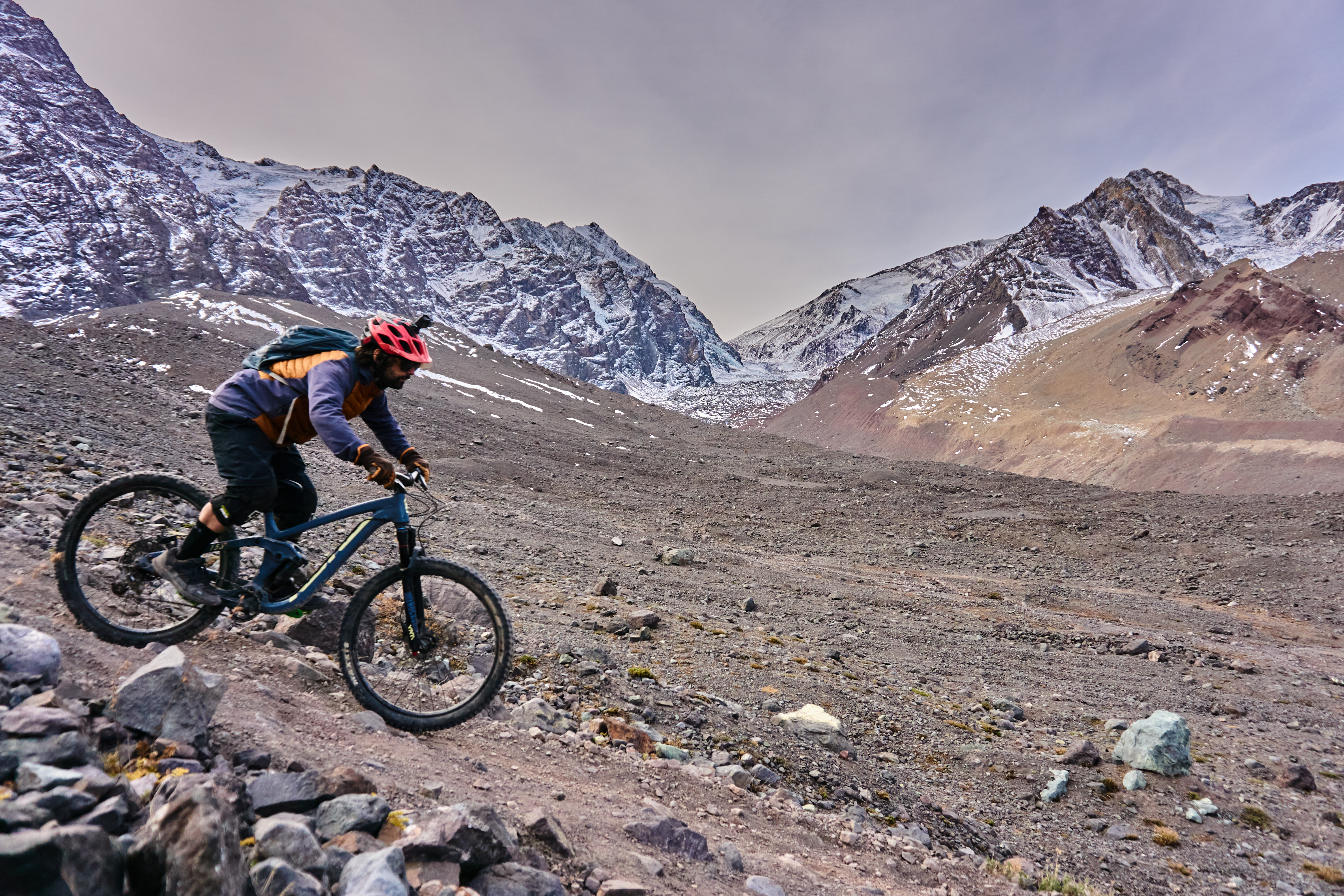 Located deep in the Andes, in the silent "Valle de la Arena", is located this great natural scenery. We will be able to contemplate, along the excursion, imposing mountains, big glaciers and feel the unequaled silence of the Andes. We finish in the great glacier El Morado, with millenary ice next to the beautiful lagoon of the same name at its feet. Come and enjoy a unique ride, surrounded by huge mountains and glaciers along the entire route. A Bigmountainbike experience in Cajon del Maipo only for bikers who love adventure and freeride.
